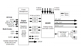 | AC97 v2.3 | 2 | 3.3 | 2 | 1 Standard | Single | None | Digital PC Beep |